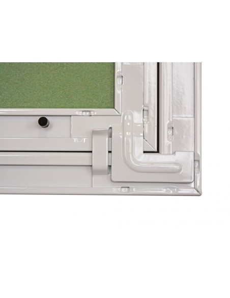 Composta da un telaio in alluminio preverniciato bianco ribordato e rinforzato che rimane fisso avvitato alla lastra e da un’anta estraibile.