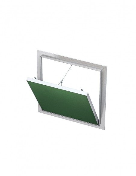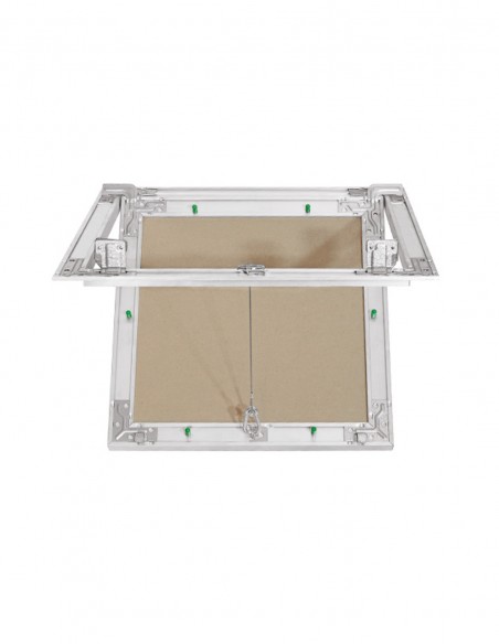 Botola di ispezione in alluminio con dispositivo di apertura click-clack e lastra idro spessore 12,5 mm.