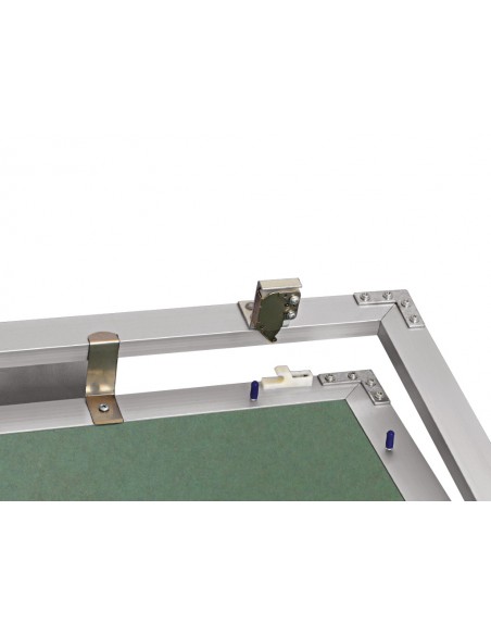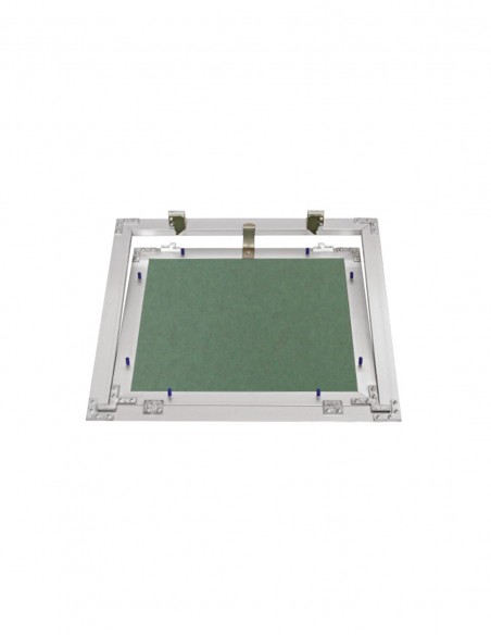 Botola di ispezione in alluminio con dispositivo di apertura click-clack e lastra idro spessore 12,5 mm.